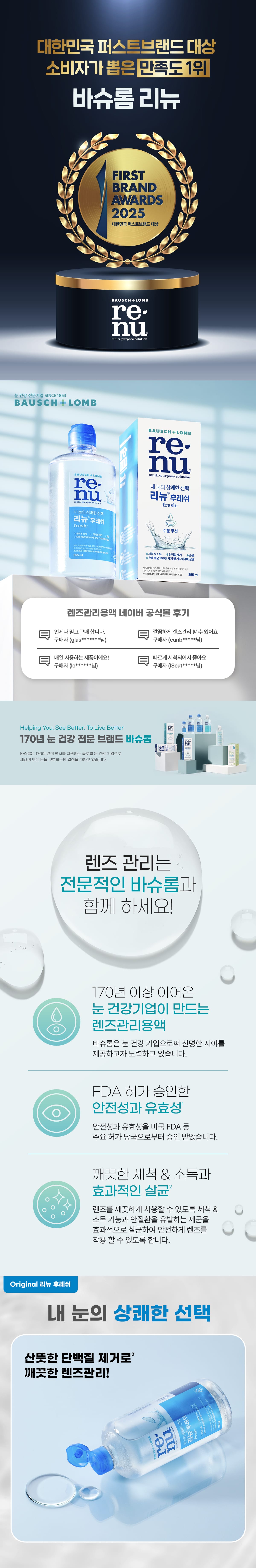 본 제품은 의료기기이며 , 사용상의 주의사항과 사용방법을 잘 읽고 사용하십시오. 바슈롬 렌즈 세척액은 의약외품입니다. 사용상의 주의사항과 사용방법을 잘 읽고 사용하십시오.