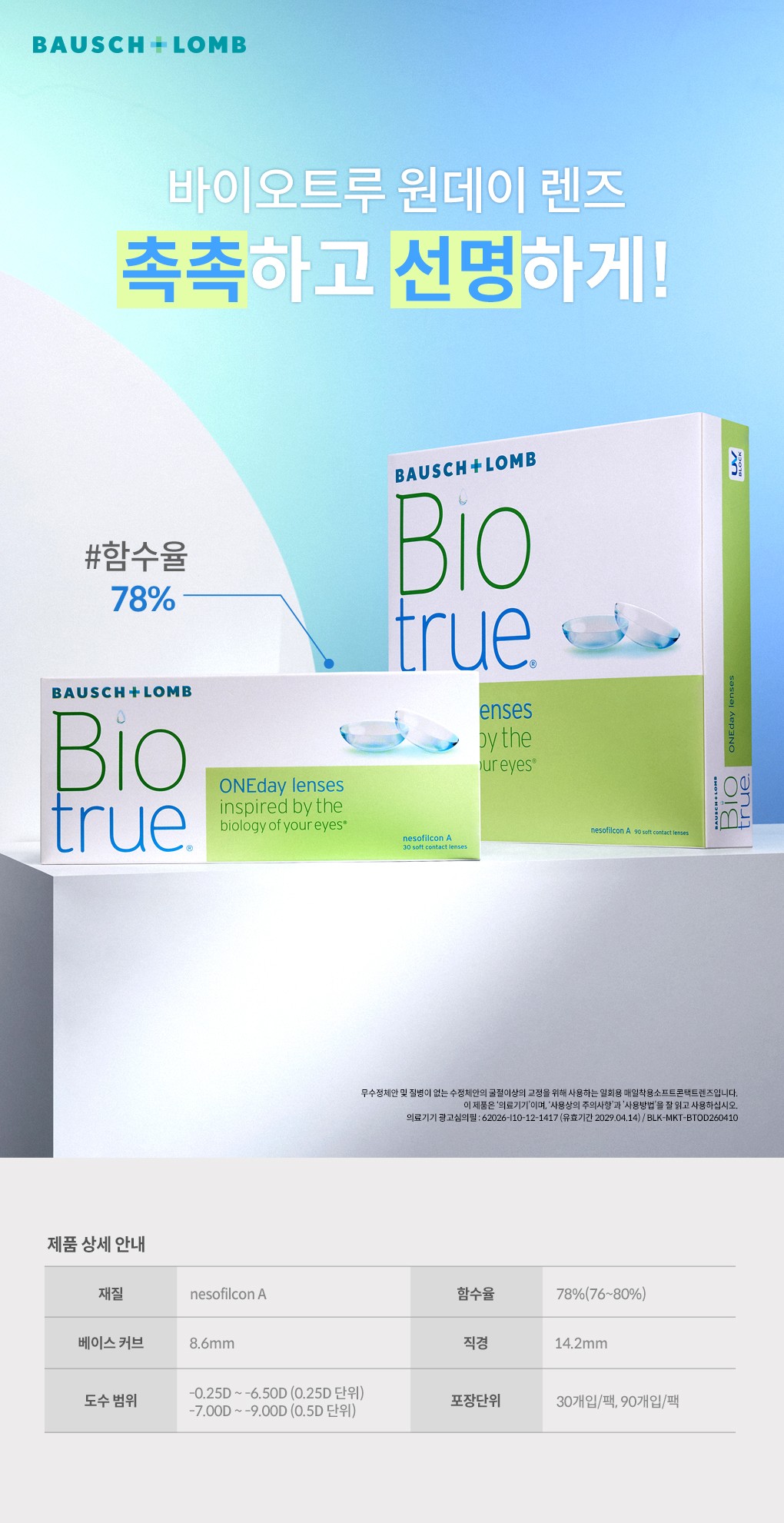 본 제품은 의료기기이며 , 사용상의 주의사항과 사용방법을 잘 읽고 사용하십시오. 바슈롬 렌즈 세척액은 의약외품입니다. 사용상의 주의사항과 사용방법을 잘 읽고 사용하십시오.